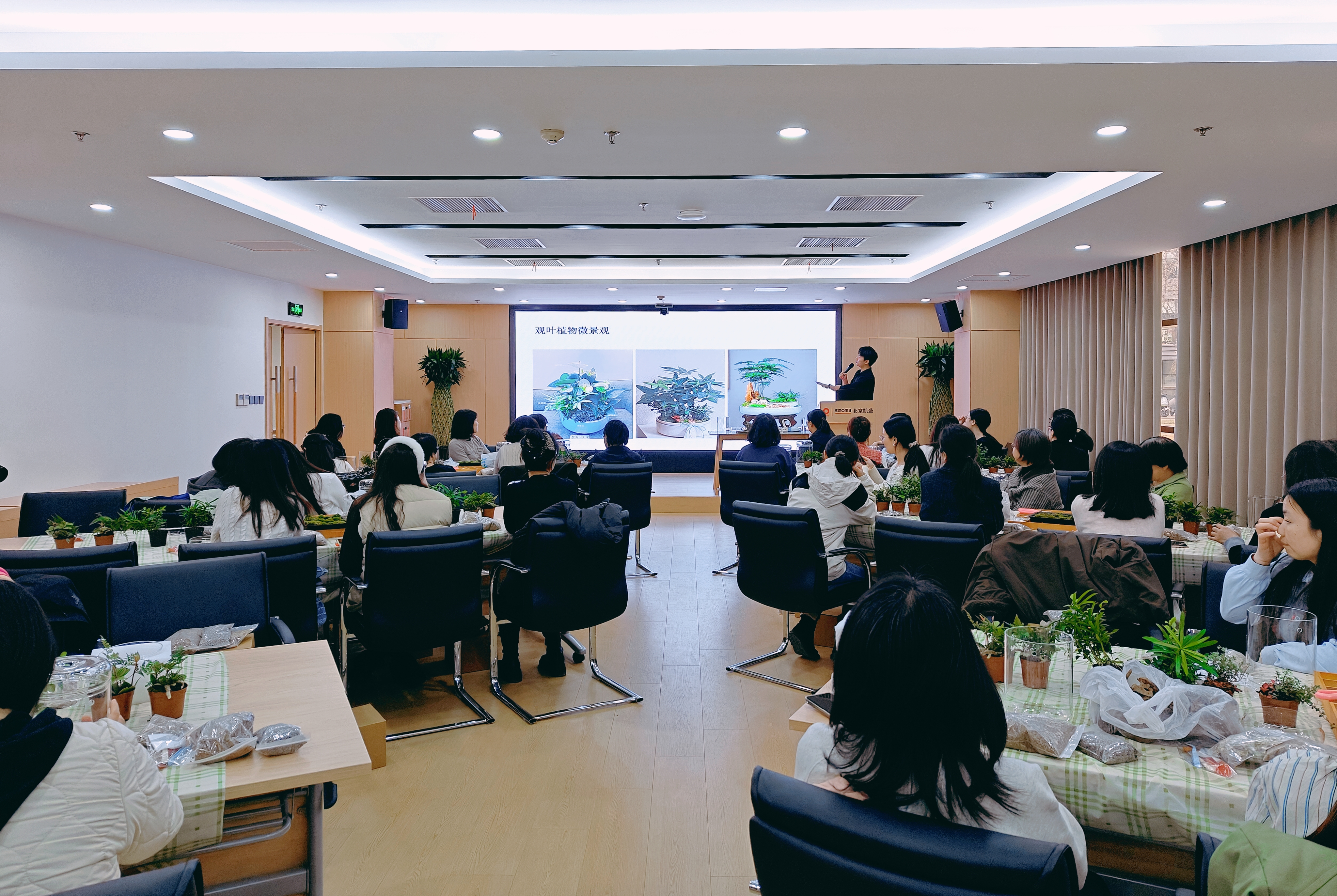 活動(dòng)中,花藝?yán)蠋熛葹榕毠冎v解微景觀的種類(lèi)以及養(yǎng)護(hù)方法,幫助大家了解微景觀造景的操作步驟和注意事項(xiàng)。在手工操作環(huán)節(jié),各位女同事在花藝?yán)蠋煹闹笇?dǎo)下,充分發(fā)揮想象力創(chuàng)造力,精心搭配綠植、砂土和擺件。大家相互交流、分享創(chuàng)意,構(gòu)建出一個(gè)個(gè)詩(shī)意美學(xué)交織的微世界。每一瓶微景觀都融入了獨(dú)特的情感與審美,展現(xiàn)了北京凱盛女性職工的柔韌與智慧。