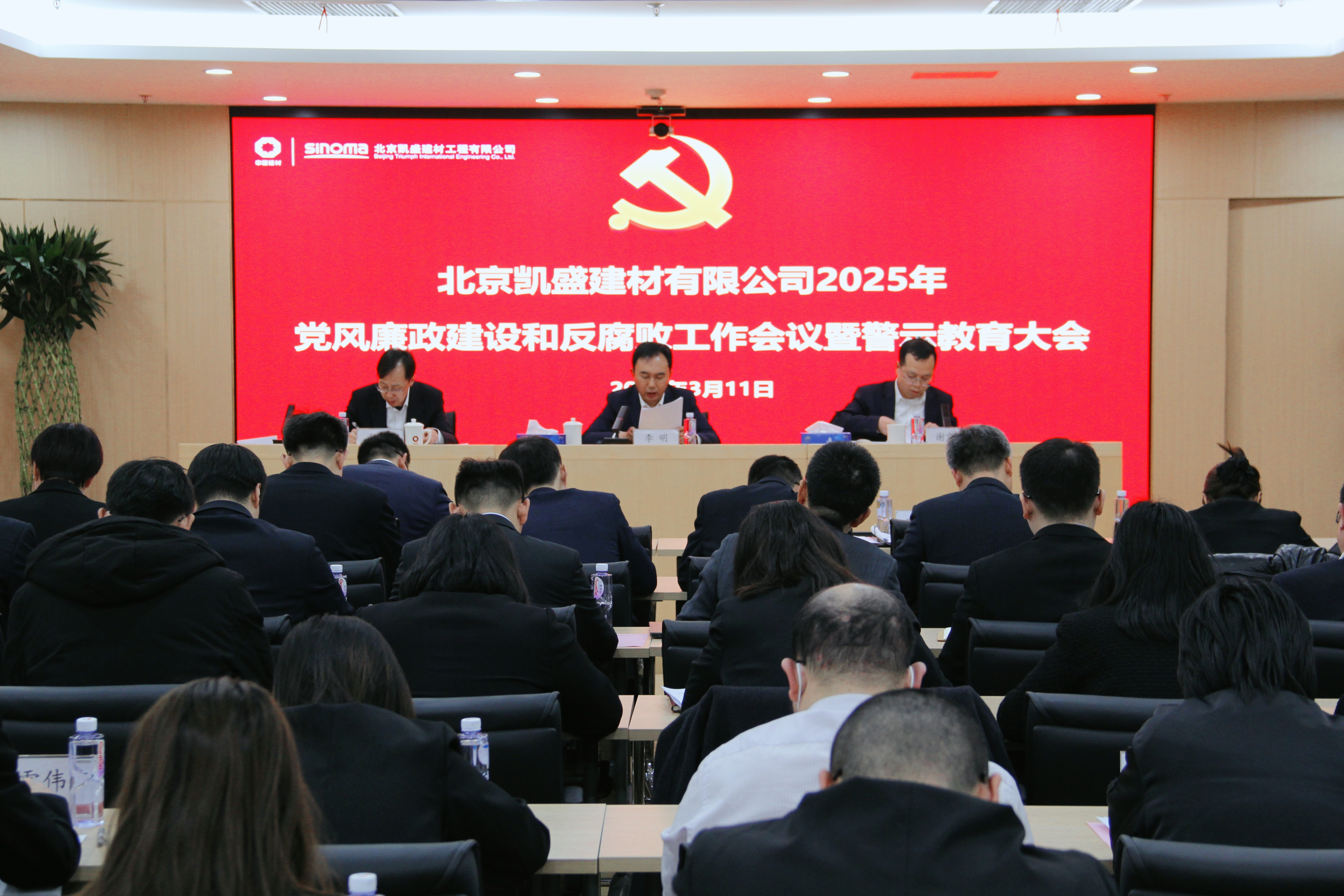 為深入貫徹黨的二十大及二十屆三中全會(huì)精神,落實(shí)二十屆中央紀(jì)委四次全會(huì)部署要求和上級(jí)黨風(fēng)廉政建設(shè)和反腐敗工作會(huì)議精神,總結(jié)回顧公司2024年黨風(fēng)廉政建設(shè)和反腐敗工作,開展警示教育,研究部署2025年重點(diǎn)工作任務(wù),3月11日,北京凱盛召開2025年黨風(fēng)廉政建設(shè)和反腐敗工作會(huì)議暨警示教育大會(huì)。北京凱盛黨總支書記、董事長李明出席會(huì)議并講話,黨總支紀(jì)檢委員、副總經(jīng)理、總會(huì)計(jì)師孟凡利作題為《正風(fēng)肅紀(jì) 廉潔護(hù)航 以全面從嚴(yán)治黨為公司高質(zhì)量發(fā)展提供堅(jiān)強(qiáng)保障》的工作報(bào)告,黨總支副書記、總經(jīng)理謝吉優(yōu)主持會(huì)議。