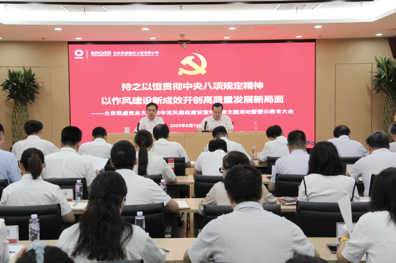 為深入學(xué)習(xí)貫徹習(xí)近平新時(shí)代中國特色社會(huì)主義思想,壓實(shí)管黨治黨政治責(zé)任,推進(jìn)全面從嚴(yán)治黨走深走實(shí),進(jìn)一步加強(qiáng)公司黨風(fēng)廉政建設(shè),結(jié)合正在開展的深入貫徹中央八項(xiàng)規(guī)定精神學(xué)習(xí)教育,8月12日下午,北京凱盛黨總支以“持之以恒貫徹中央八項(xiàng)規(guī)定精神 以作風(fēng)建設(shè)新成效開創(chuàng)高質(zhì)量發(fā)展新局面”為主題,開展2025年黨風(fēng)廉政建設(shè)宣傳教育主題活動(dòng),并召開深入貫徹中央八項(xiàng)規(guī)定精神學(xué)習(xí)教育警示教育大會(huì)。公司黨總支書記、董事李明出席活動(dòng)并講話,黨總支副書記、總經(jīng)理謝吉優(yōu)主持會(huì)議并開展警示教育。